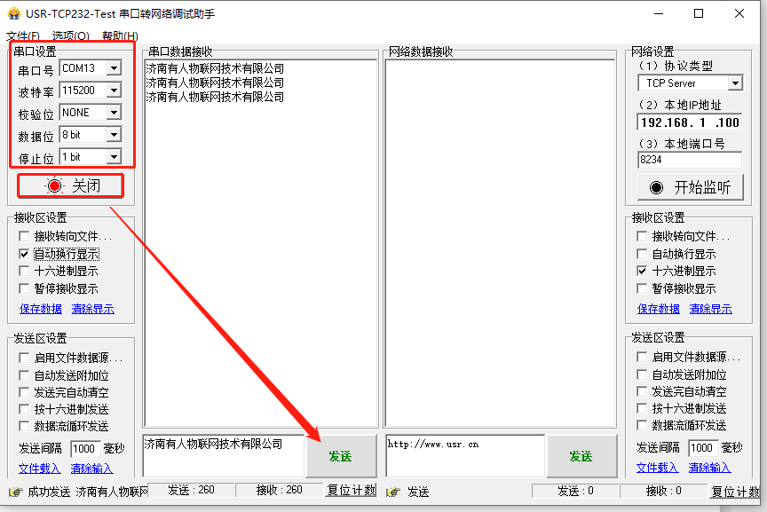 1>test.usr.cn:2317是我司TCP/UDP測試服務器,連接通信現象是向服務器發送什么數據,服務器就會立刻返回什么數據,類似自收發。