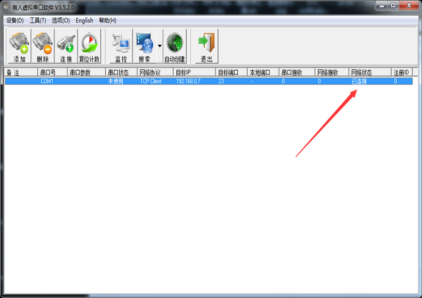 三、COM1網(wǎng)絡(luò)狀態(tài)為已連接,說明網(wǎng)絡(luò)通信OK。