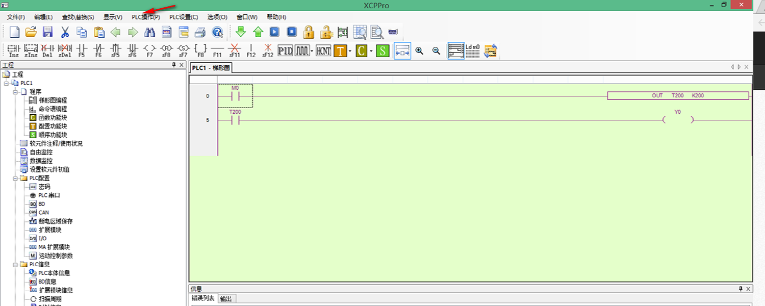 六、點擊“PLC操作”-“上傳用戶程序”,上傳成功會顯示PLC梯形圖。
