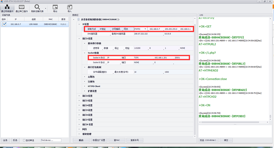 八串口服務(wù)器的測(cè)試說(shuō)明: