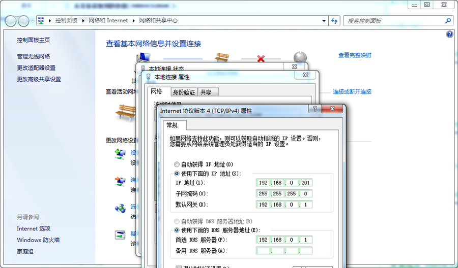 三、給電腦設(shè)置靜態(tài)IP,要與668的IP在同一個(gè)網(wǎng)段(668默認(rèn)參數(shù)見(jiàn)表