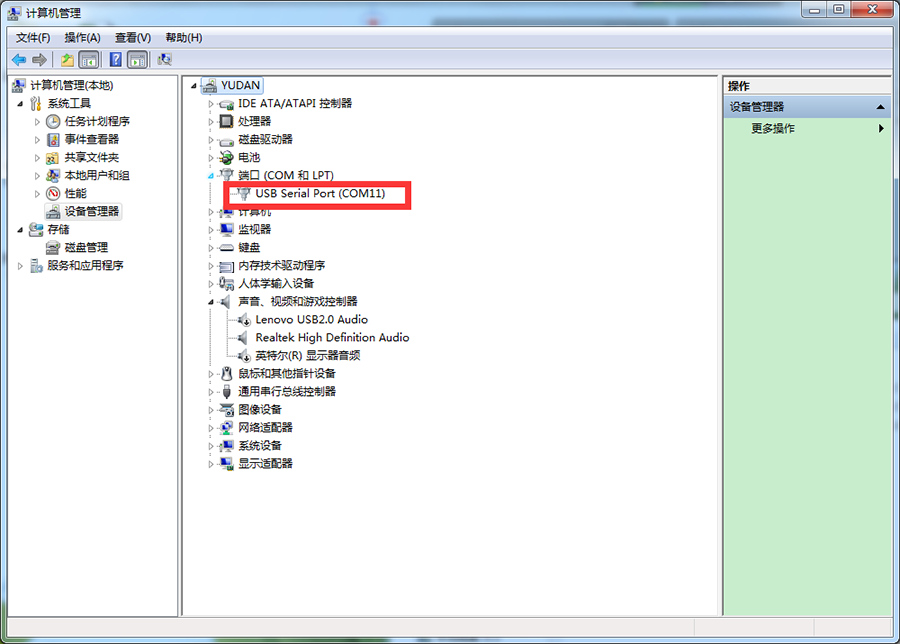 五、在設(shè)備管理器中查看端口信息,確定N668串口使用的串口號(hào),如下圖所示電腦端口號(hào)為COM11。