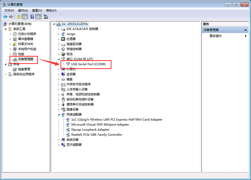 4> 查看W600在電腦上對應的COM號,在設備管理器中可以查看,這里是COM9