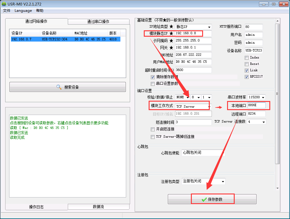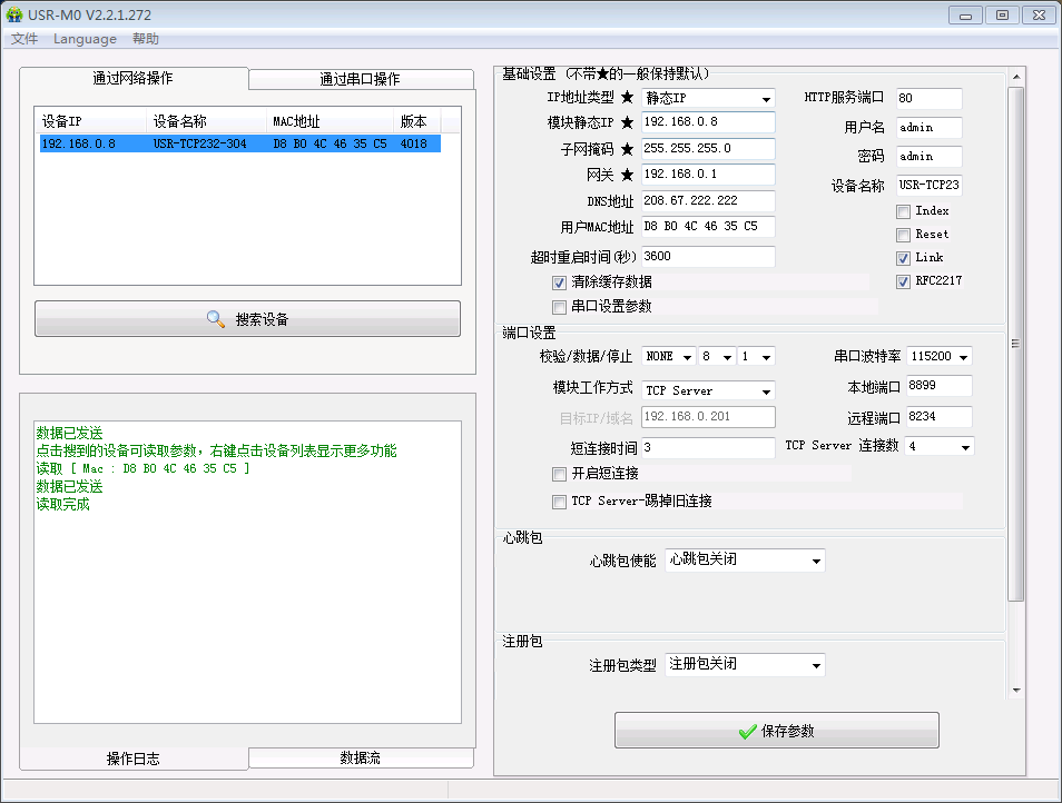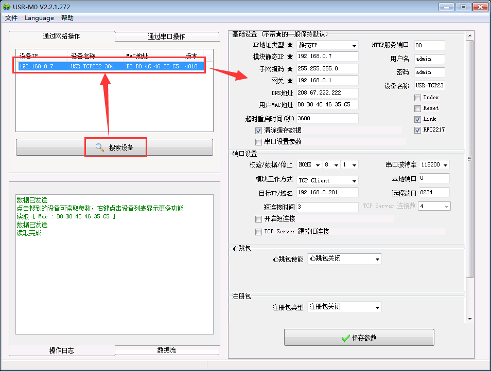 3. 打開設置軟件:搜索設備--->點擊搜索出來的設備--->設備目前的參數