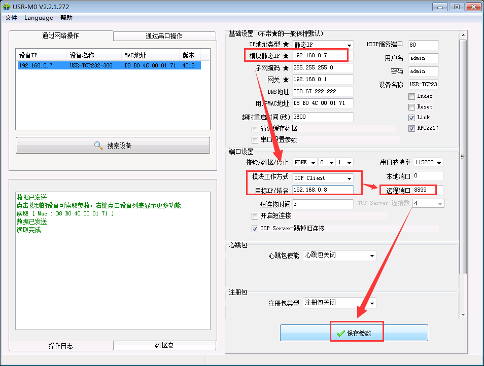 注意:304/306的串口參數需要和連接的串口設備一致