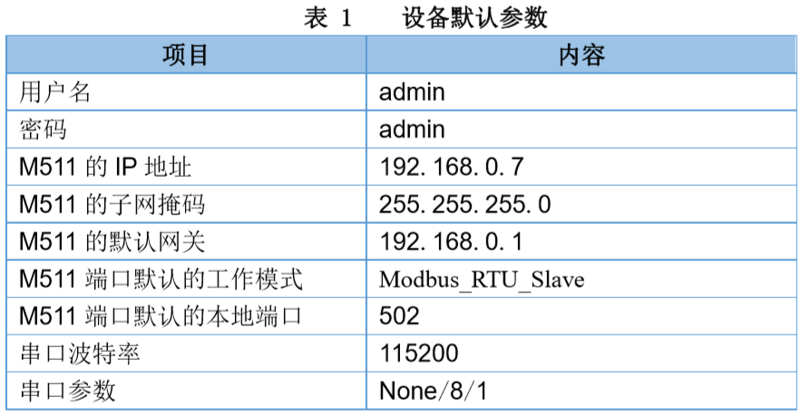 二、設備默認參數