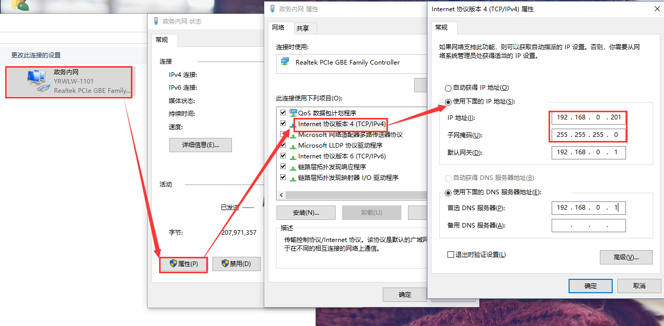 3.給電腦設置靜態IP,要與511的IP在同一個網段(511默認參數見表1)。