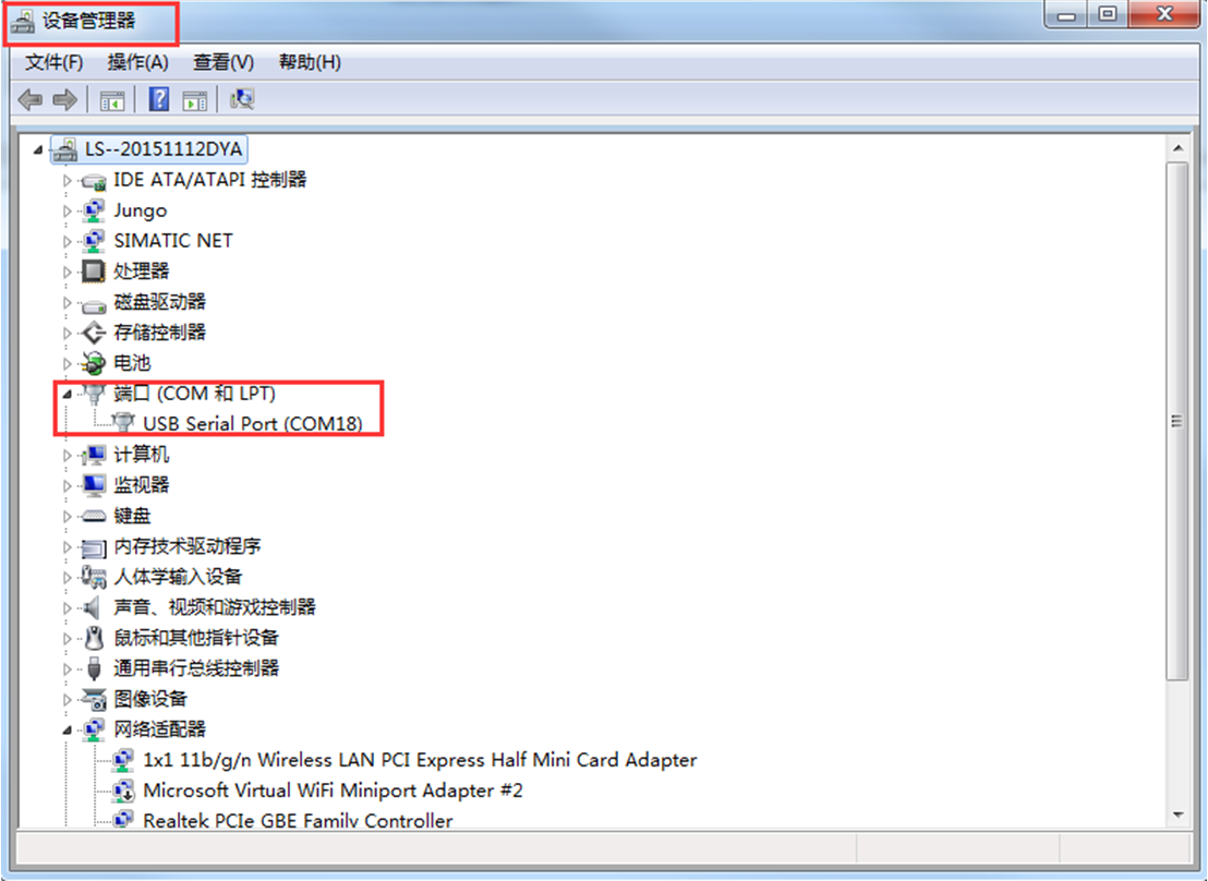 其中串口號可以在電腦的“設備管理器”中查看,見下圖;