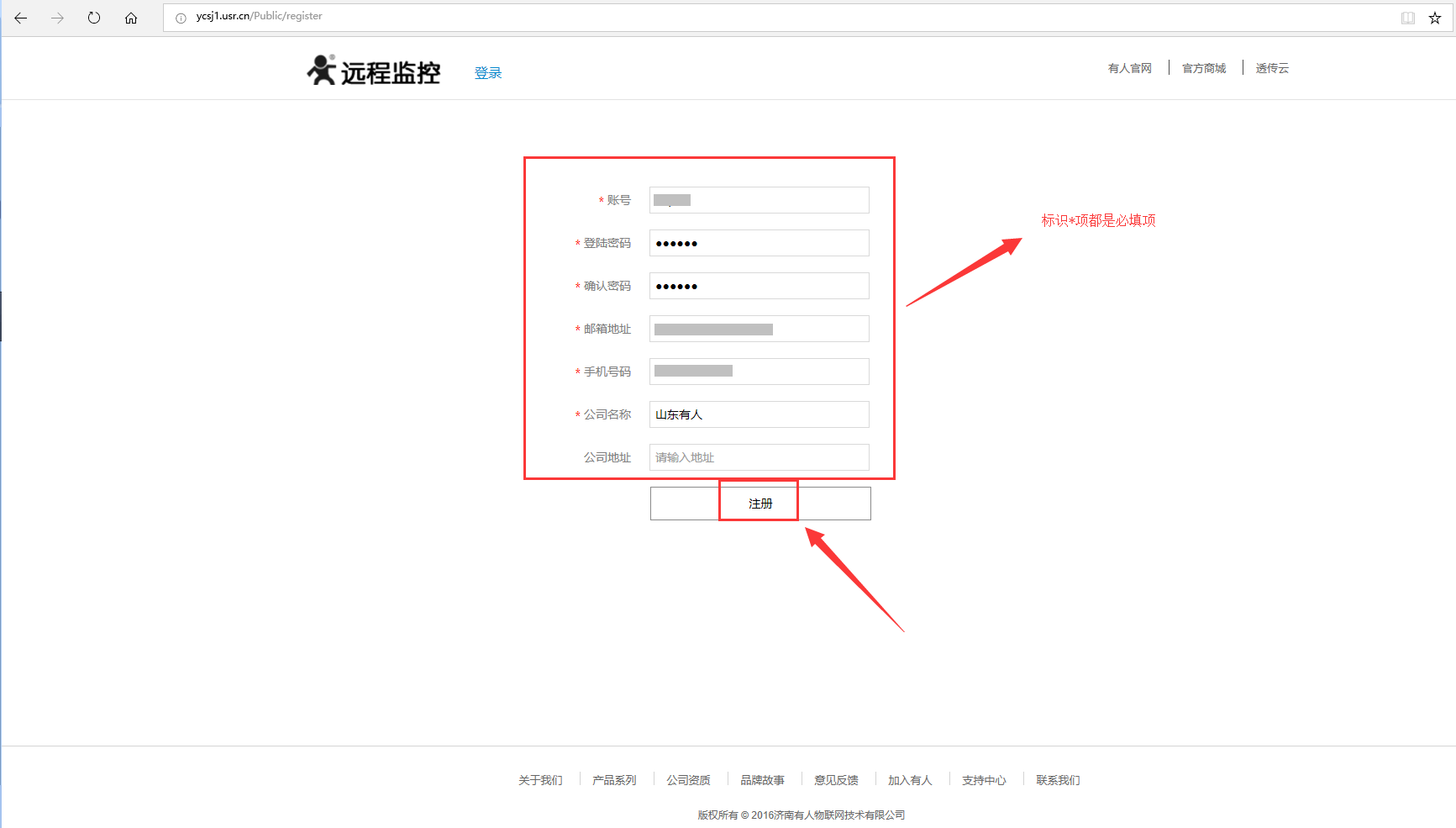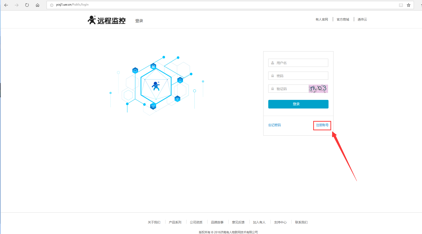 開啟使用此功能之前,需要登錄http://ycsj1.usr.cn遠程監控后臺注冊賬號,
