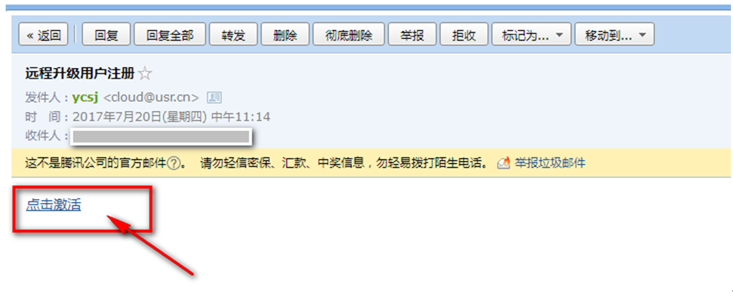 3、點擊注冊后,會向您填寫的郵箱內發送一封郵件,如下截圖
