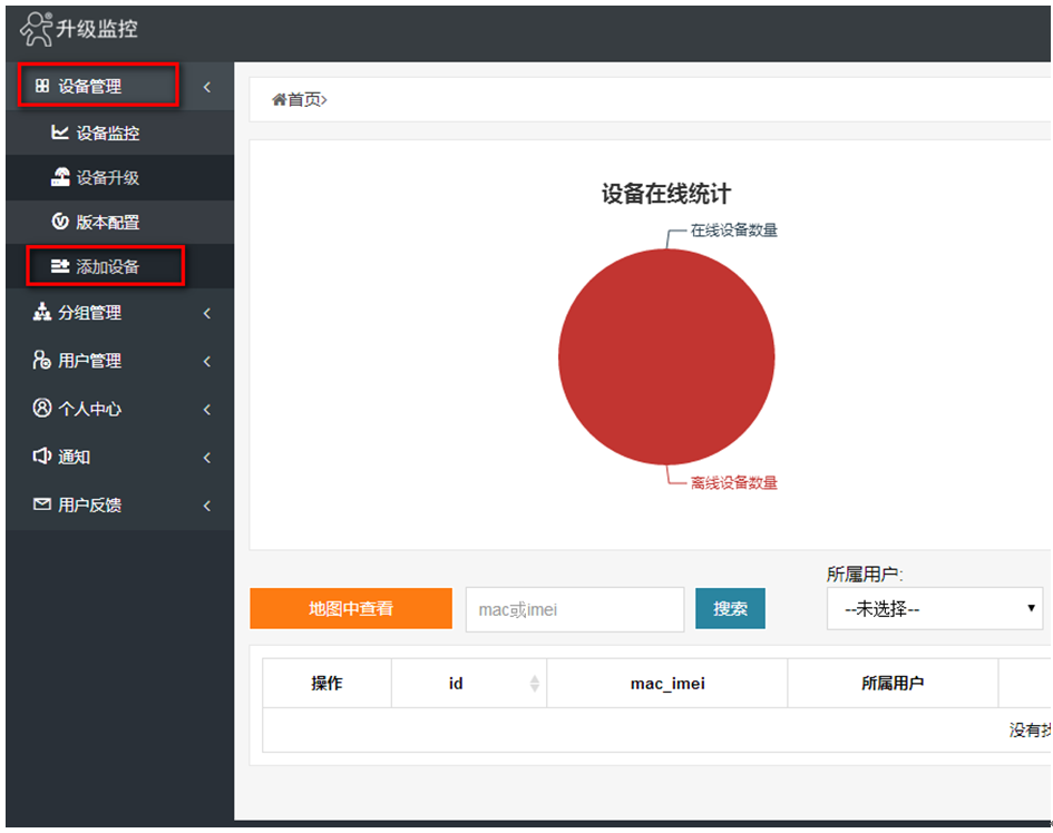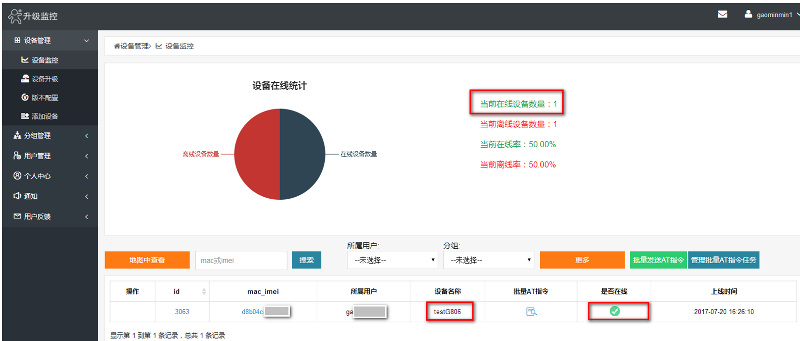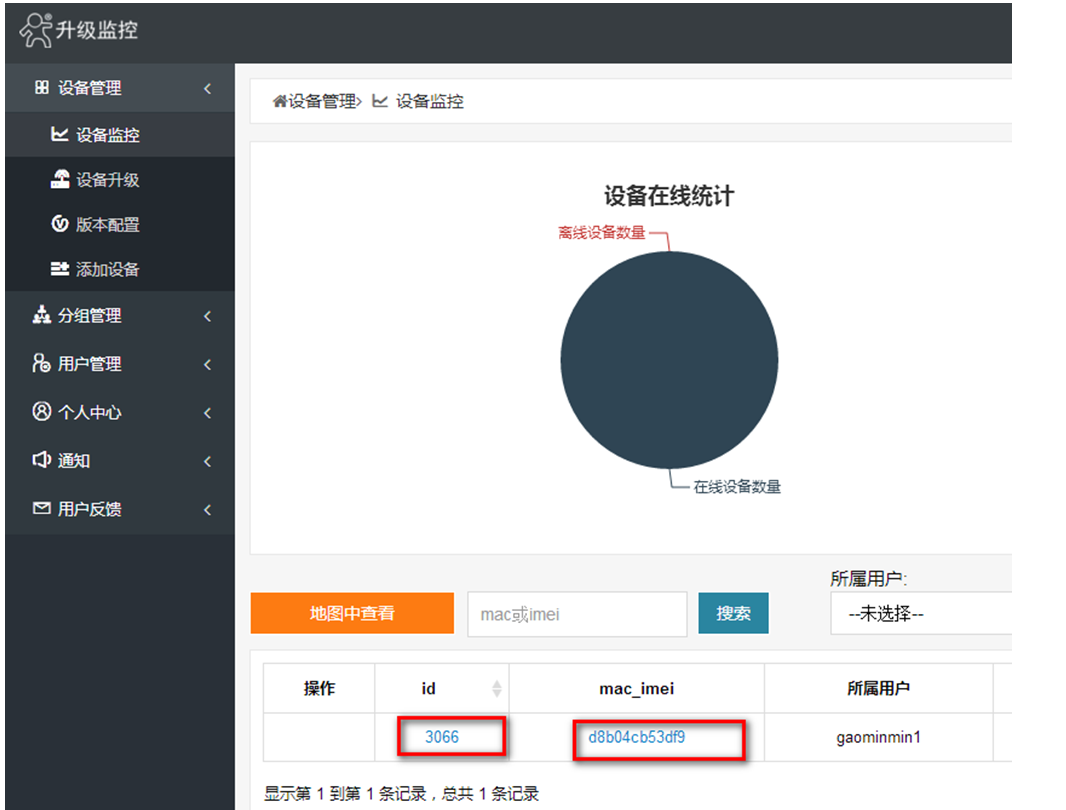 6、等待1分鐘左右,點擊“設備監控”,在設備監控界面,即可看到在線設備,如下