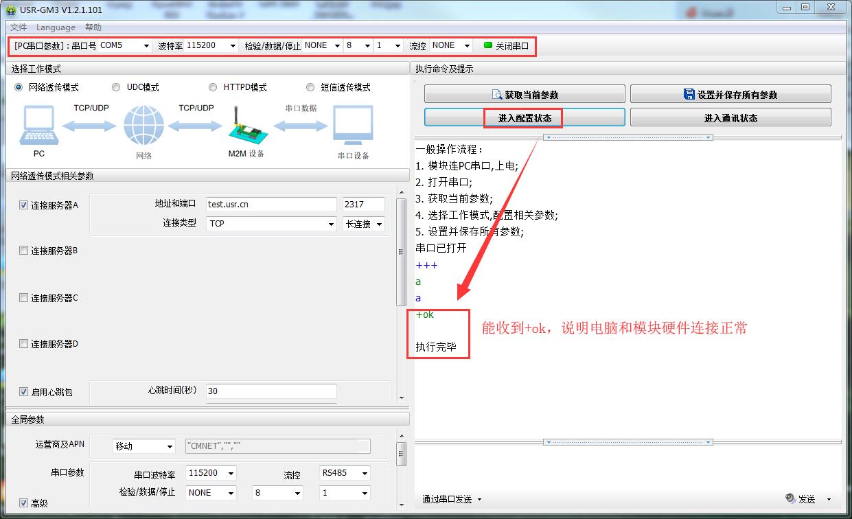 1>DTU出廠默認的串口參數(shù)是115200,n,8,1;確定打開串口的參數(shù)沒有問題