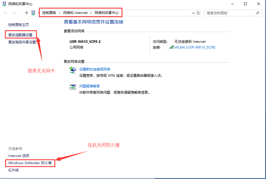 注意:在開始測試之前,一定要把電腦上的防火墻關閉,退出殺毒軟件;在適配器設置中禁用本地網卡、VPN、虛擬機以及其他的網絡設備。