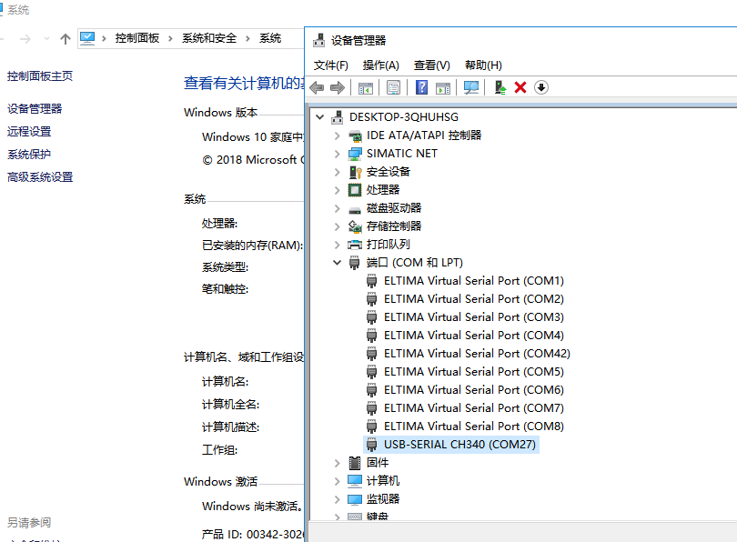 4> 用USB轉485,或者是USB轉232把設備的串口接到電腦上,查看W630在電腦上對應的COM號,在設備管理器中可以查看,這里是COM27