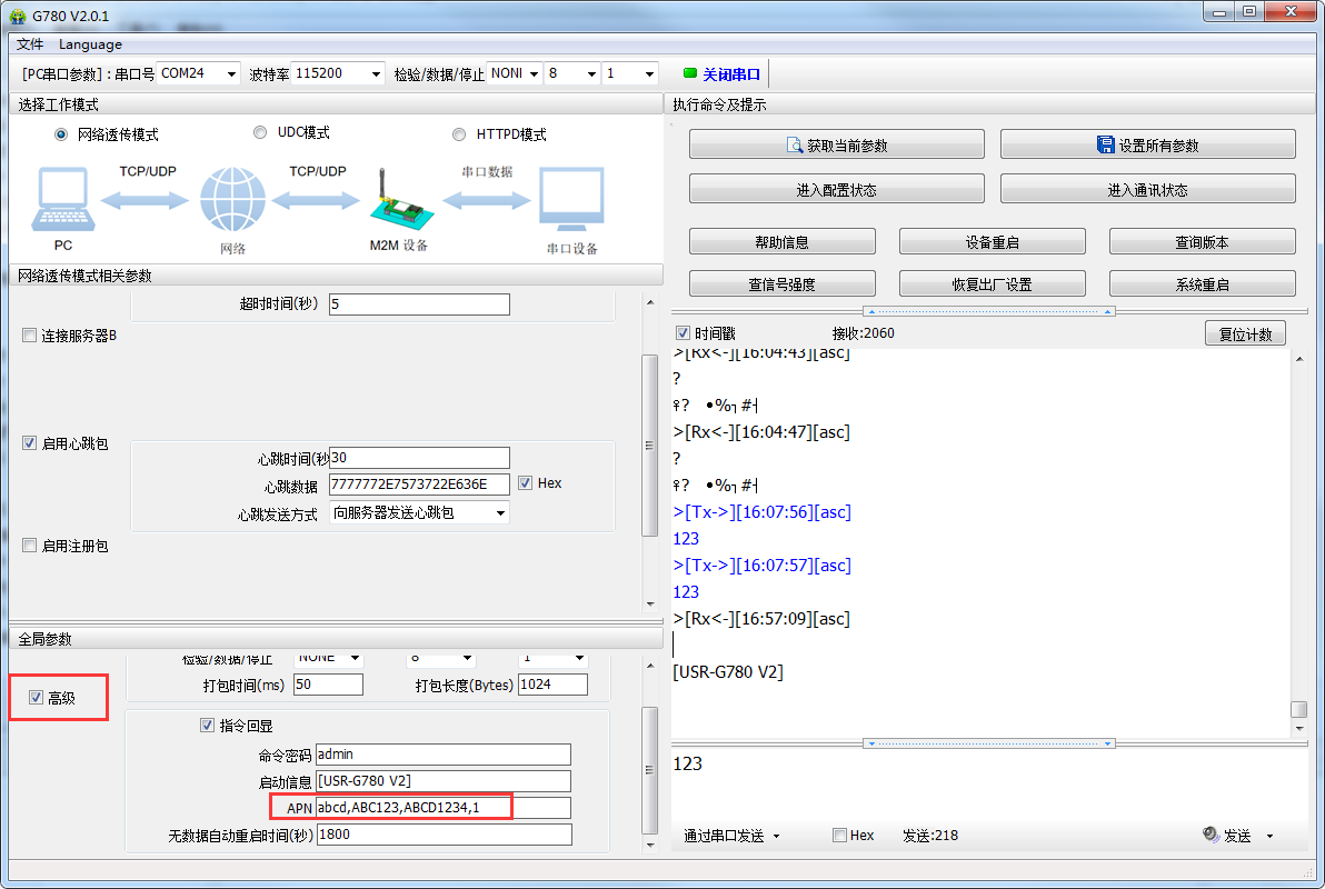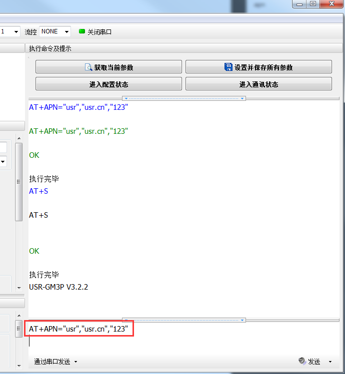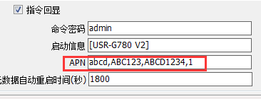 也可以用AT指令來設置的AT+APN=”usr”,”usr.cn”,”123”