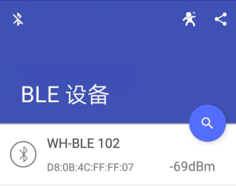 模塊上電之后LINK燈閃爍,時(shí)間大約為1秒閃爍一次,使用手機(jī)軟件進(jìn)行搜索(放大鏡按鈕)可以搜索到名為WH-BLE10X的設(shè)備,需要手動(dòng)開(kāi)啟APP所需要的權(quán)限(手機(jī)-設(shè)置-應(yīng)用 選擇這個(gè)app,允許它要用到的所有權(quán)限)如圖所示。