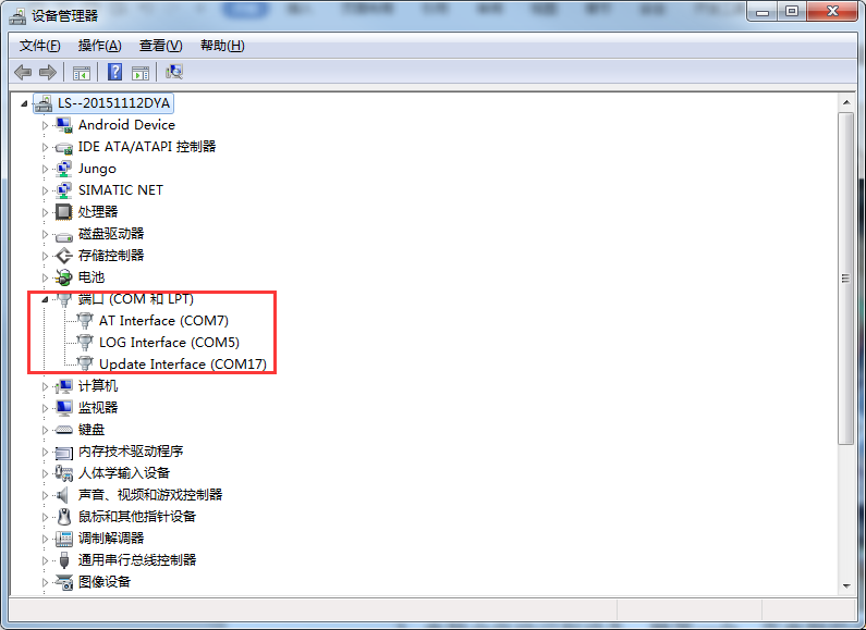 3. 電腦會自動識別設備,稍等一會,在電腦的設備管理器中可以看到相關設備。