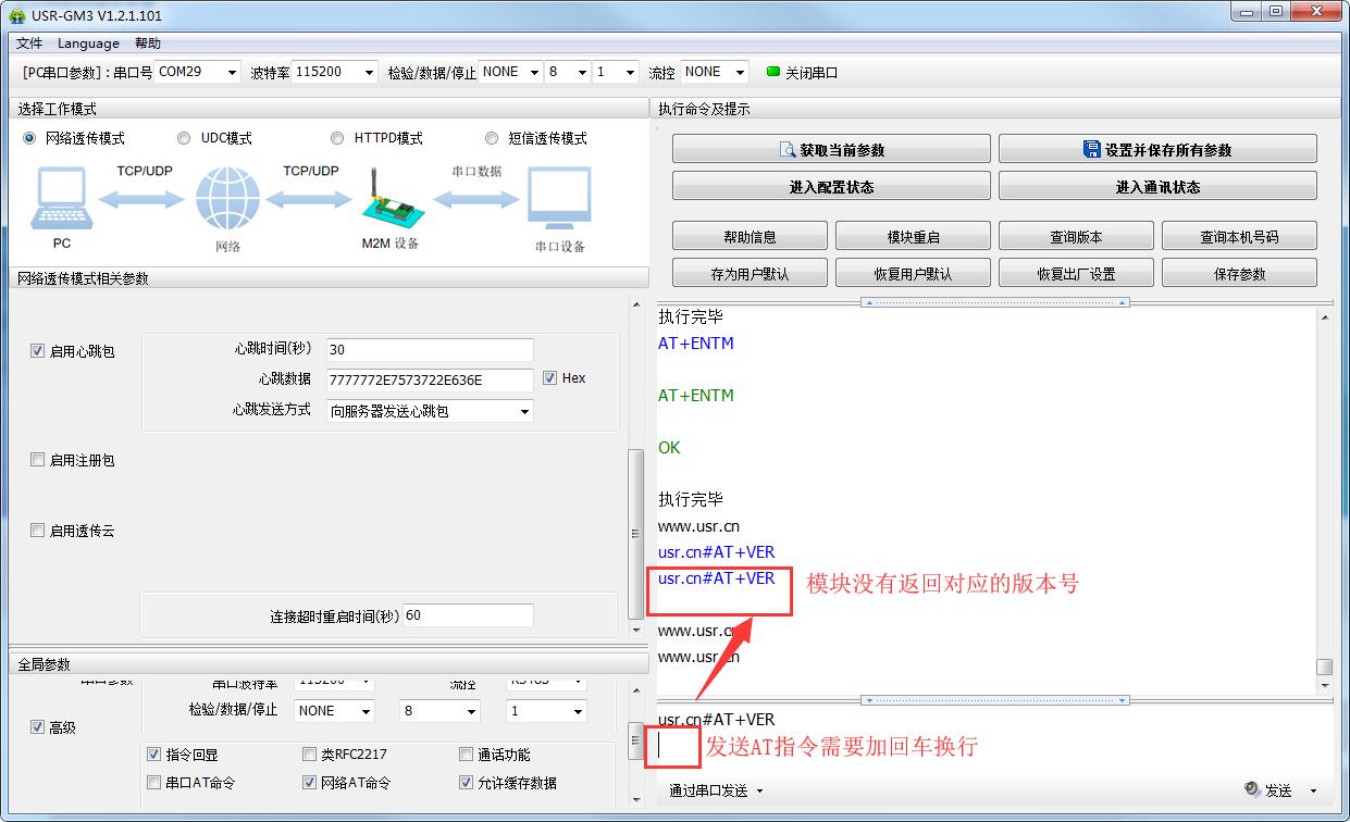 等待模塊重啟后,我們再發送剛才的查詢版本的指令,可以看到GM3P有回復固件版本號