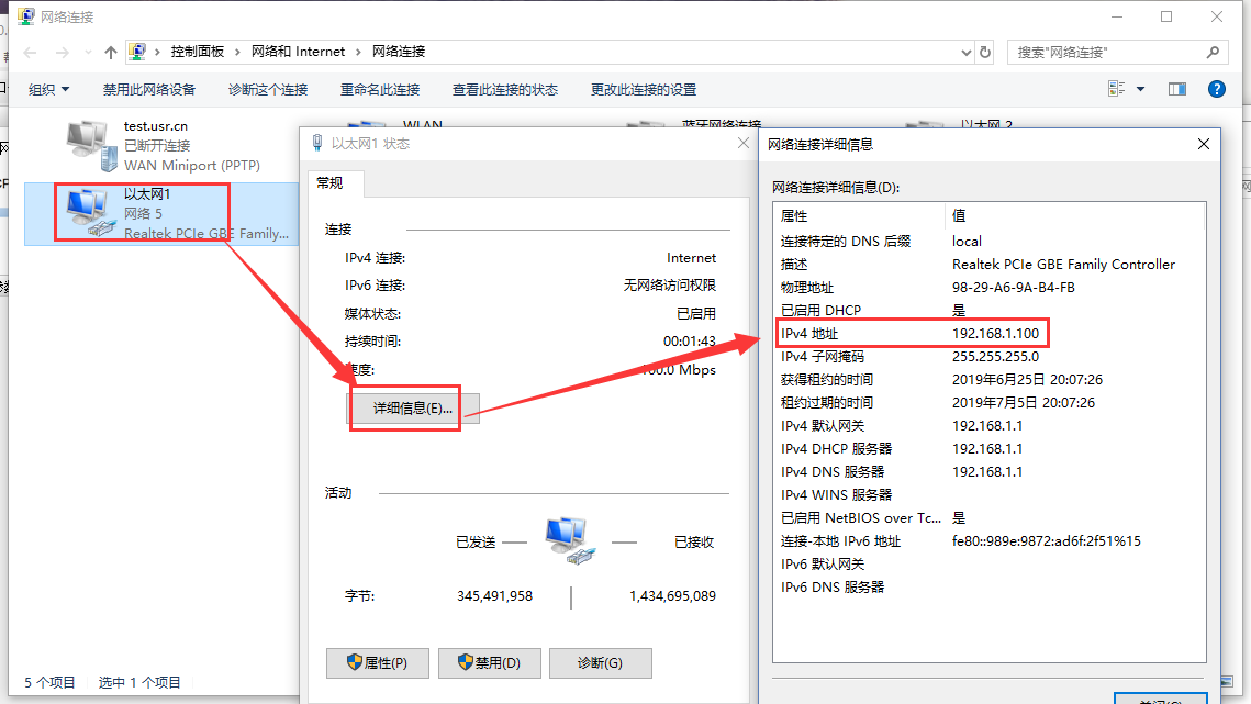 (3)打開網絡共享中心,雙擊對應的網絡適配器,點擊屬性,選擇IPV4,點擊屬性,修改電腦為自動獲取IP,然后點擊確定。(如果電腦本來就是自動獲取IP,這一步可以跳過)點擊詳細信息可以查看到電腦獲取的IP地址: