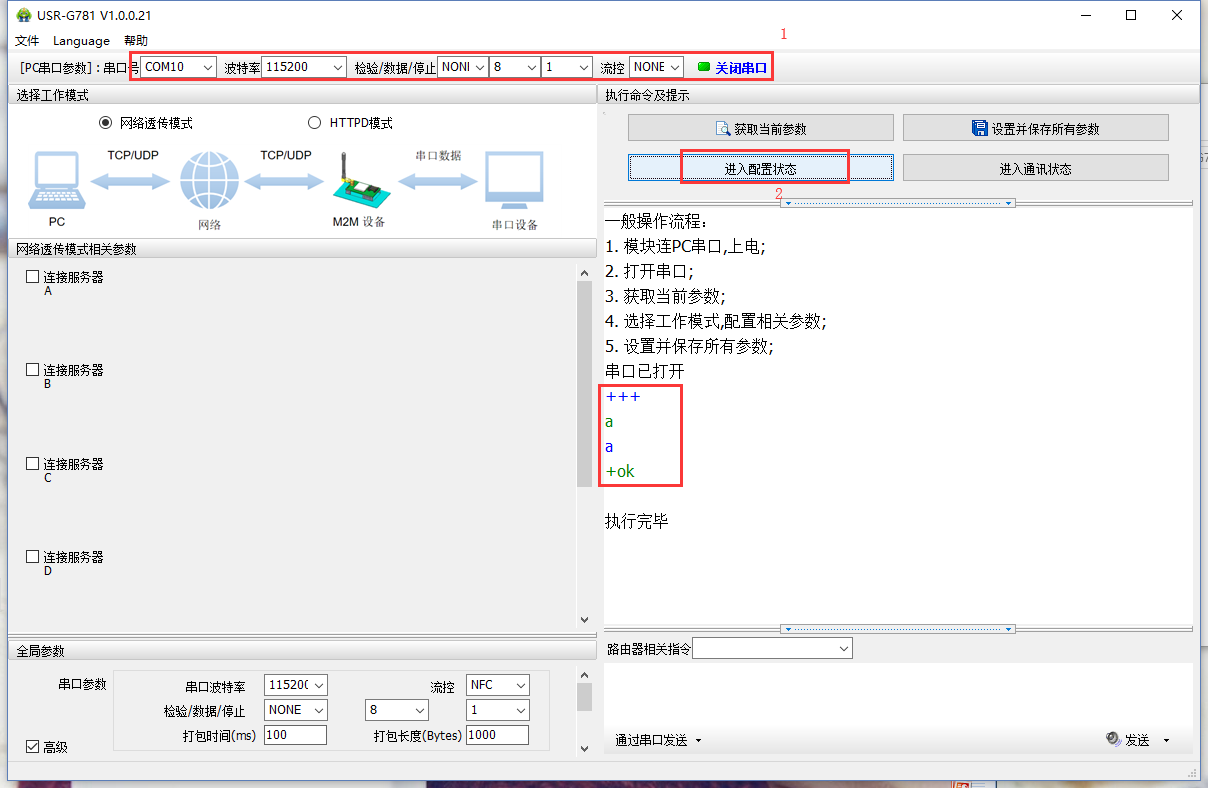 1>DTU出廠默認的串口參數是115200,n,8,1;確定打開串口的參數沒有問題