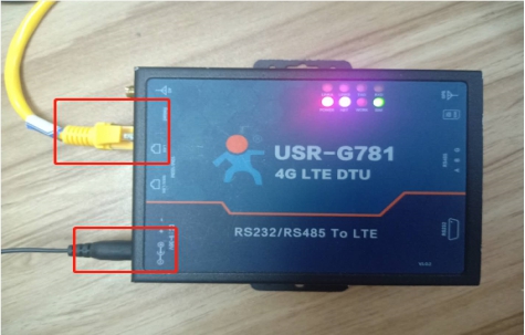 (1) 硬件連接: G781的串口通過UAB轉RS232/485接到PC上,LAN口通過網線鏈接到電腦的網口上,用我司提供的適配器供電。