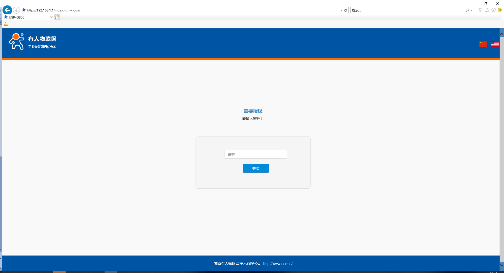 2、 瀏覽器地址欄輸入網關地址:192.168.1.1,進入G805的配置網頁。默認密碼admin