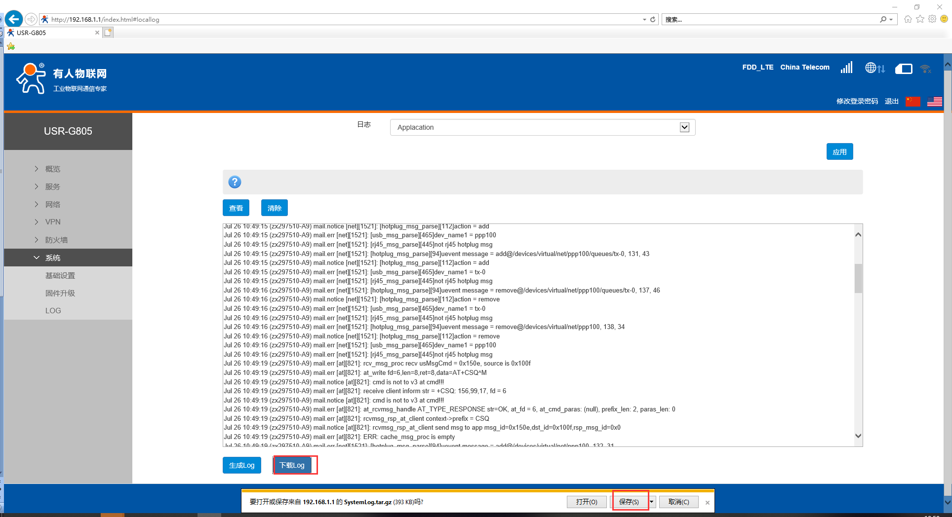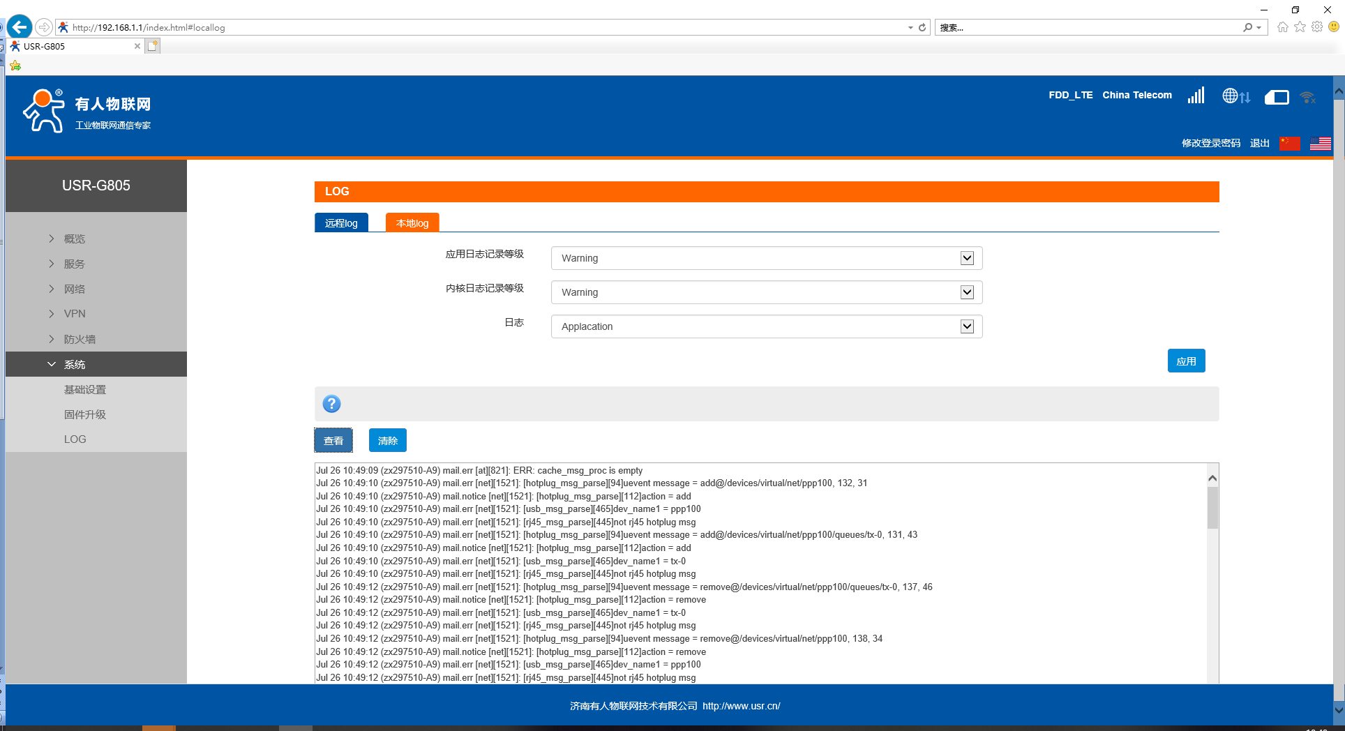 支持本地日志存儲,查看,生成,下載。 內核/應用日志等級:支持 Debug、Warning、Err、Emerg 四個等級;按順序 Debug 最低,Emerg 最高;