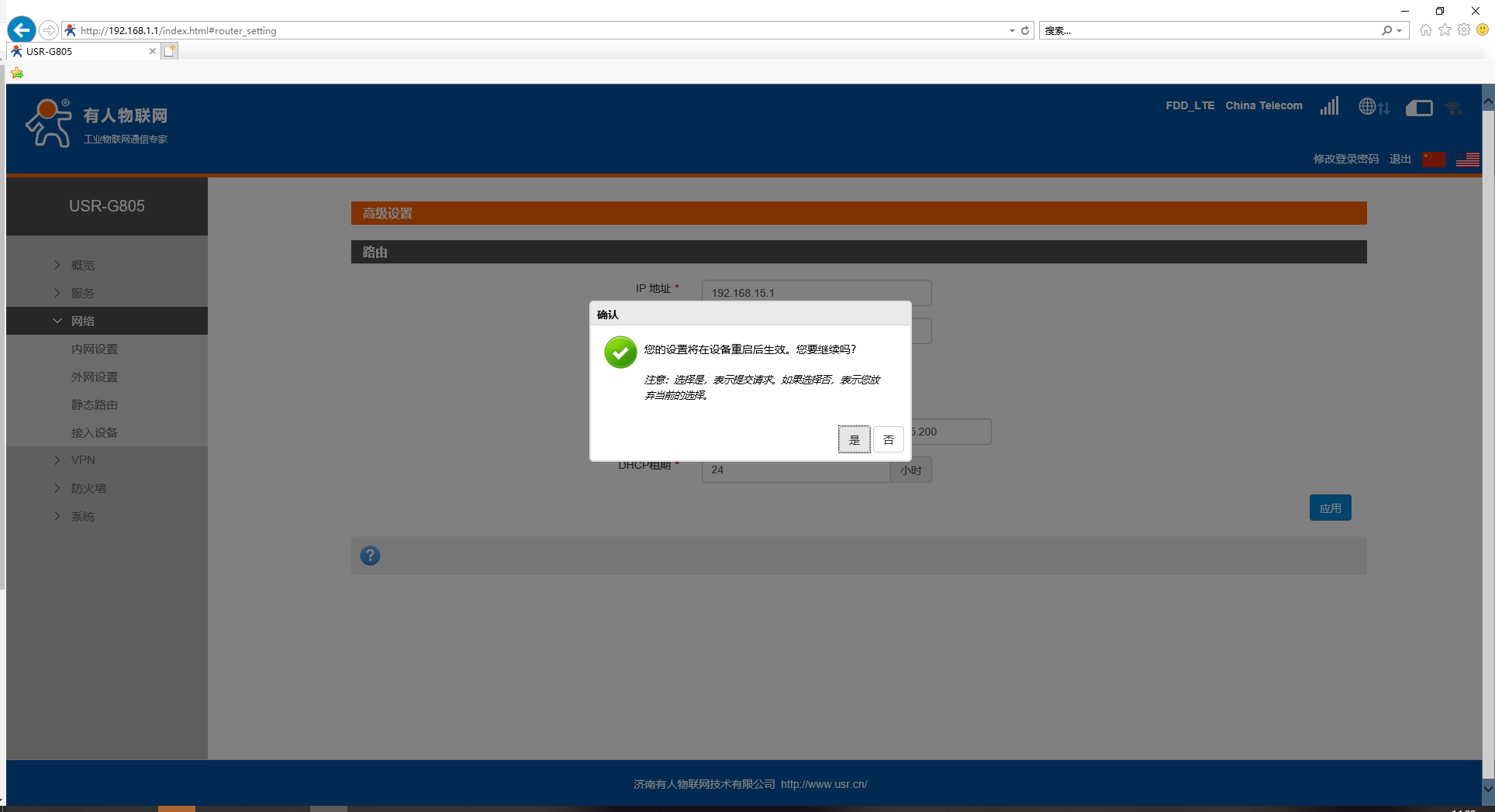 修改為所需要的網段,如下圖所示,可修改IP地址為192.168.15.1,DHCP IP池要同步修改,即192.168.15.100—192.168.15.200