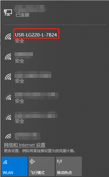 首先用PC的無線網卡,LG220的默認SSID為USR-LG220-xxxx,操作電腦的無線網卡加入這個無線網絡。