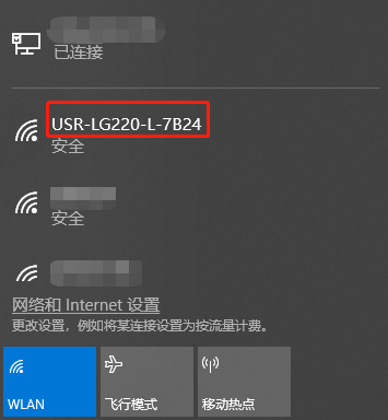 (1)使用集中器配套的電源適配器給集中器供電,集中器上電啟動完成后用PC或手機可以搜索到集中器的WIFI熱點,默認的SSID為USR-LG220-L-xxxx,xxxx為集中器MAC地址的后四位。