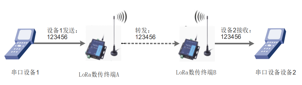 使用RS232串口線分別將LoRa數(shù)傳終端A、B接入串口設(shè)備(以PC機(jī)代替),給LoRa數(shù)傳終端裝上天線,然后給LoRa數(shù)傳終端上電。