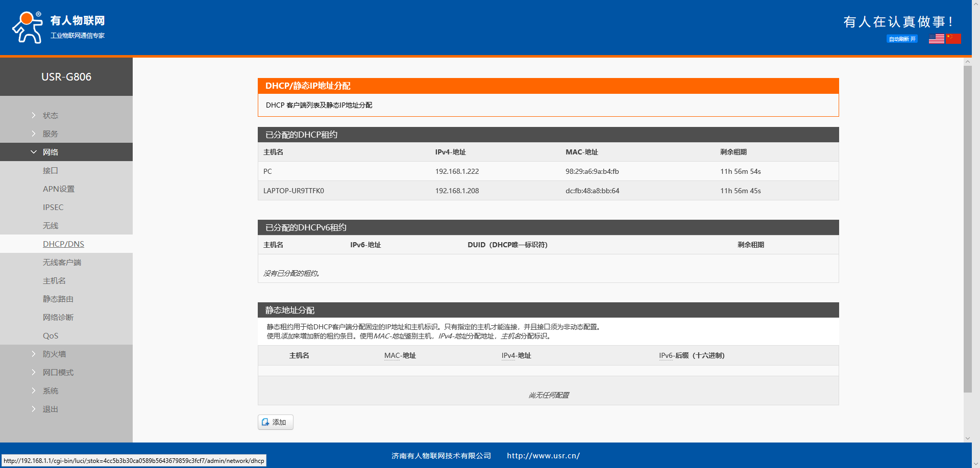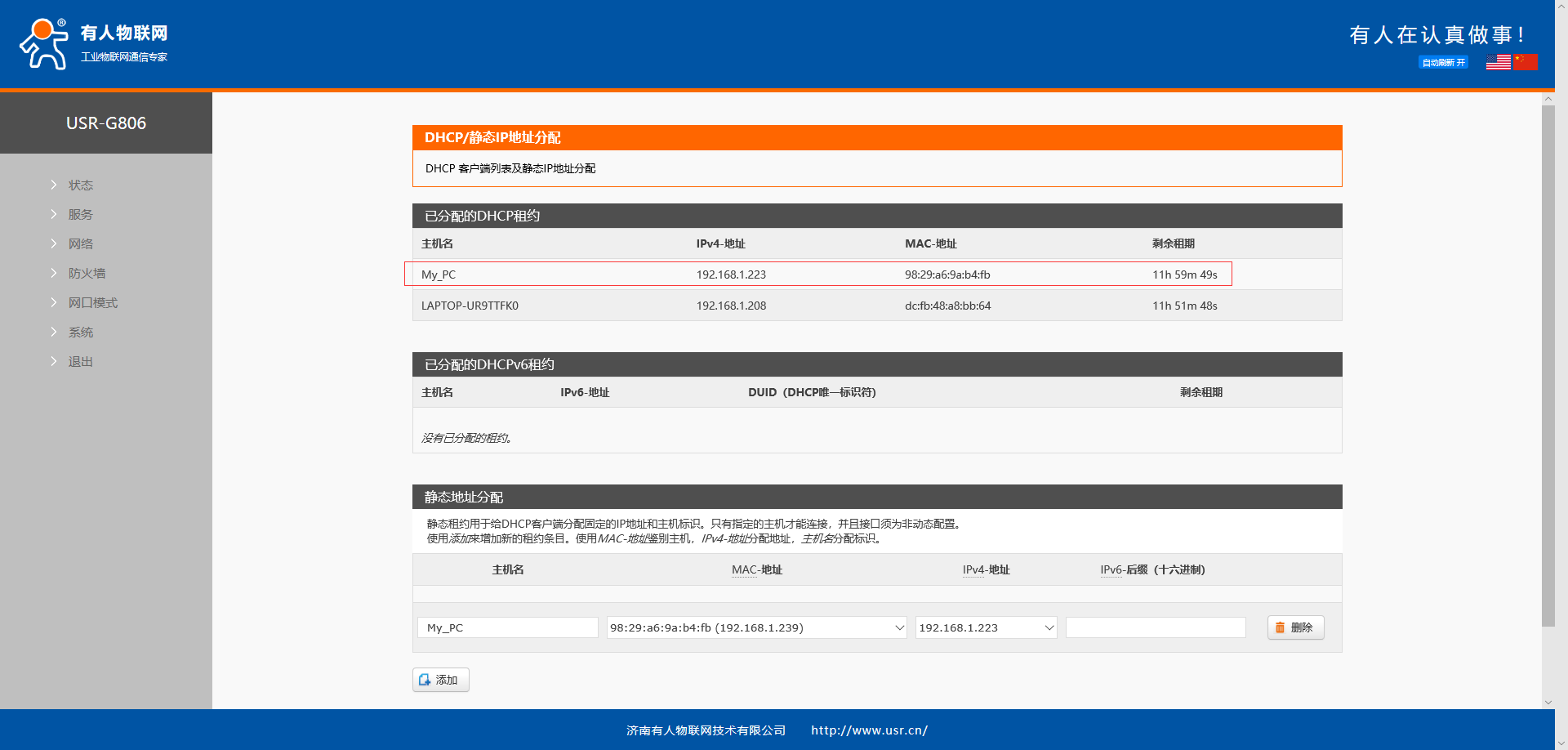 注意:若不知道設備MAC,且之前設備是DHCP接入G806,可以在該界面上已分配的DHCP租約看到設備的接入信息。