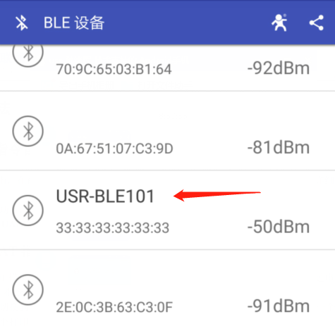 模塊上電之后LINK燈閃爍,時間大約為1秒閃爍一次,使用手機軟件進行搜索(放大鏡按鈕)可以搜索到名為WH-BLE101的設備,需要手動開啟APP所需要的權限(手機-設置-應用 選擇這個app,允許它要用到的所有權限)如圖所示。