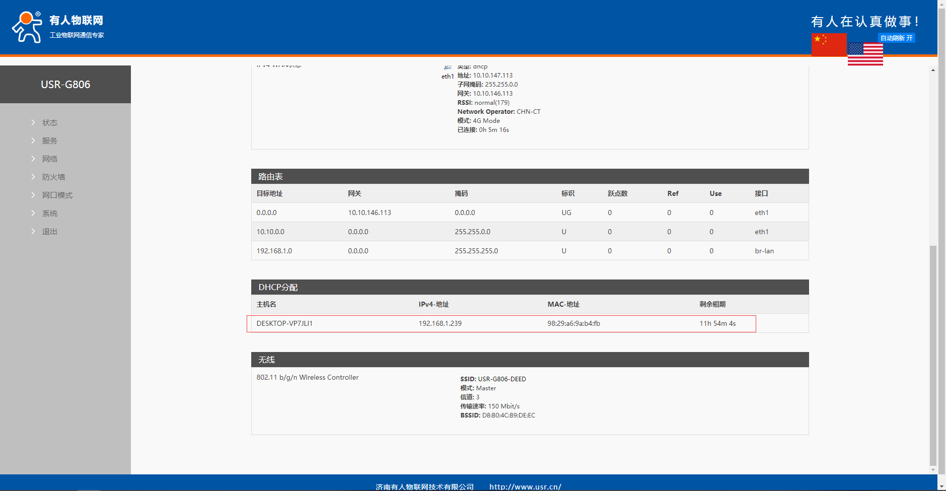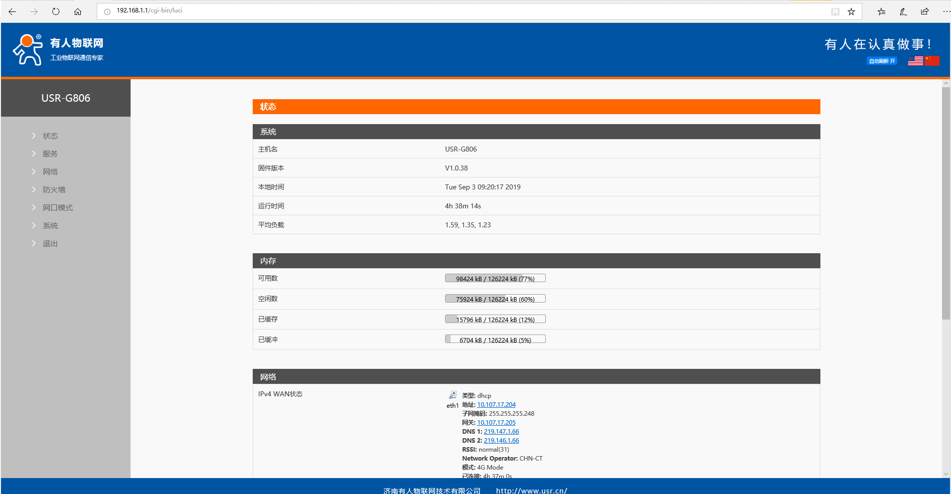5、 上電之后,觀察指示燈:PWR常亮、LAN 閃爍、4G 燈(3G+2G 燈)點亮、信號燈全亮代表信號良好
