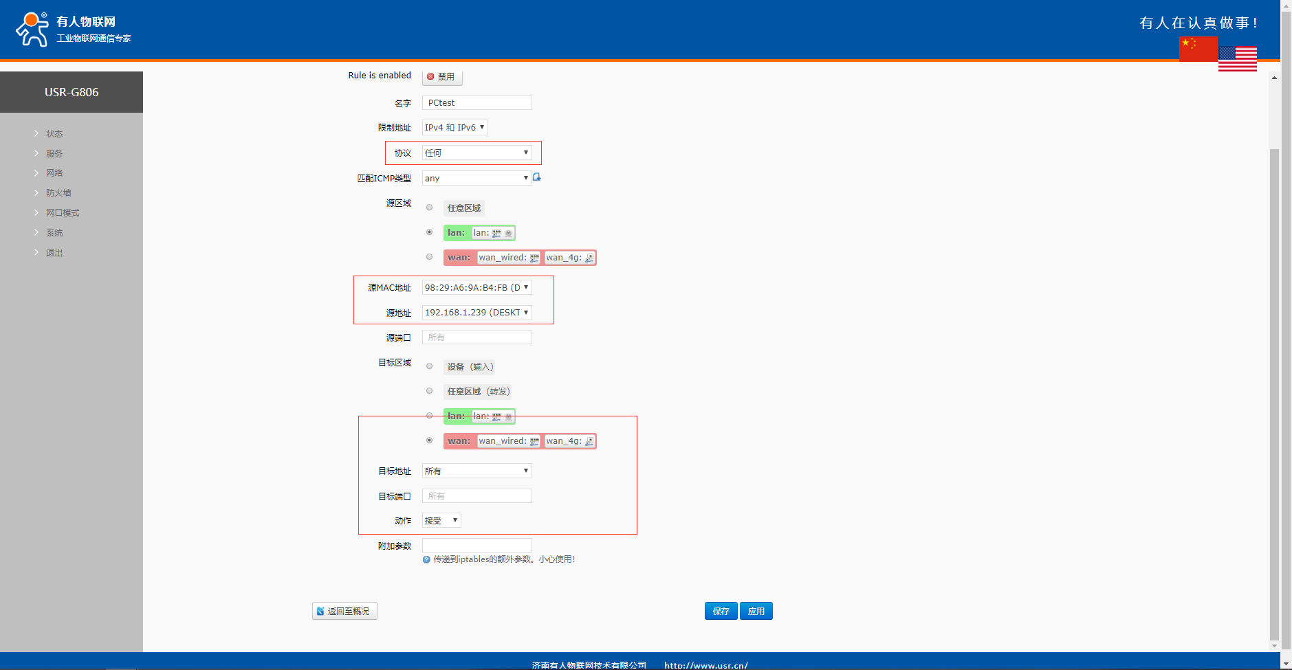 兩條規則添加好之后點擊保存應用,然后重啟設備