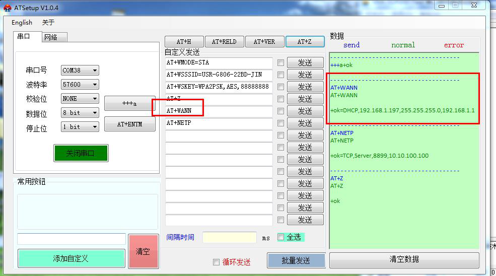 可以用AT指令AT+WANN查詢(xún)路由器分配給W610的IP。