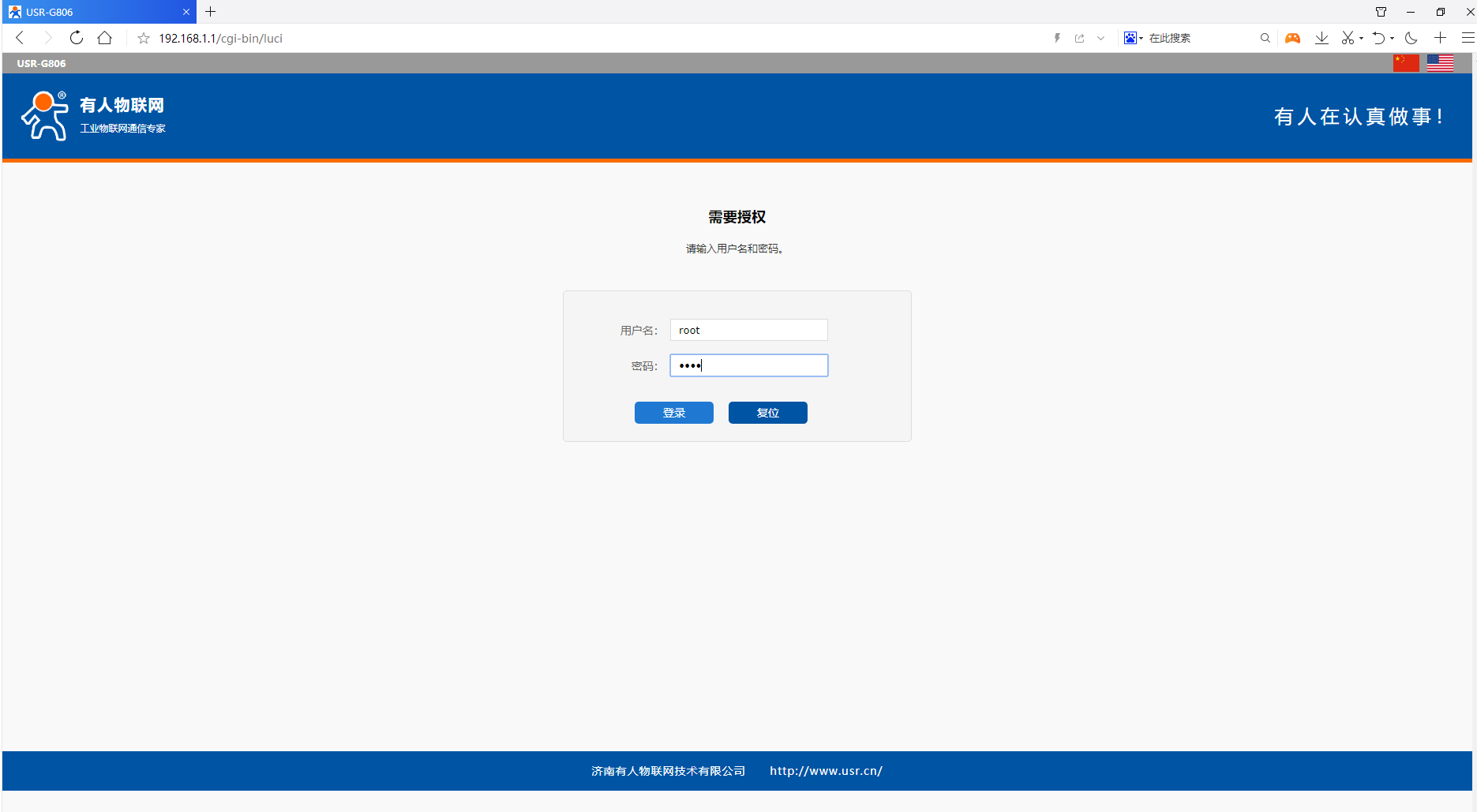 1) 打開瀏覽器(不要用360瀏覽器),在地址欄輸入192.168.1.1,出廠默認用戶名密碼為root
