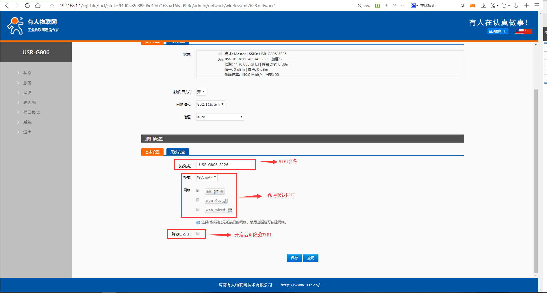 隱藏ESSID勾選開啟后,可隱藏WiFi名稱,增強安全性