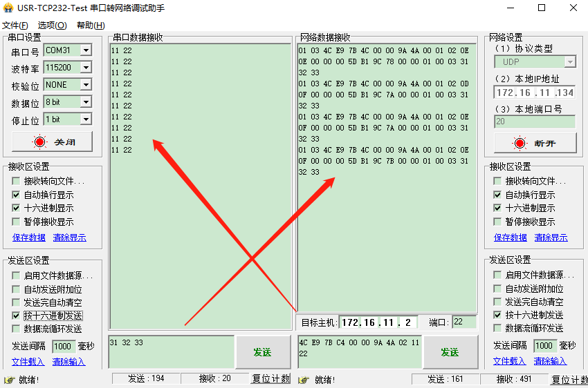 節點接收有效數據:11 22