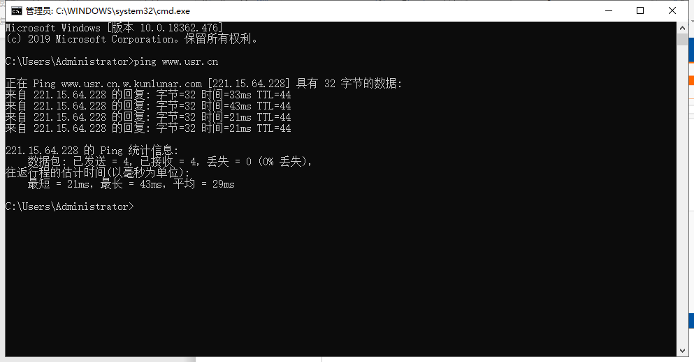 在電腦上的命令提示符界面ping外網試一下,如下,說明網絡正常: