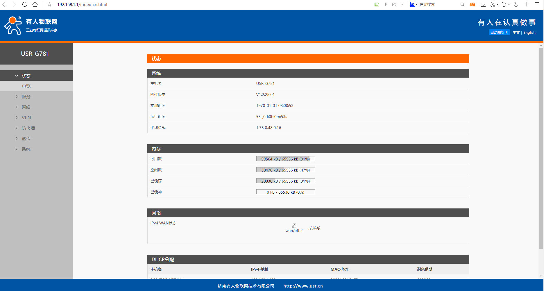 DTU G781出廠默認LAN口IP192.168.1.1,PC會獲取到一個同一網段的IP