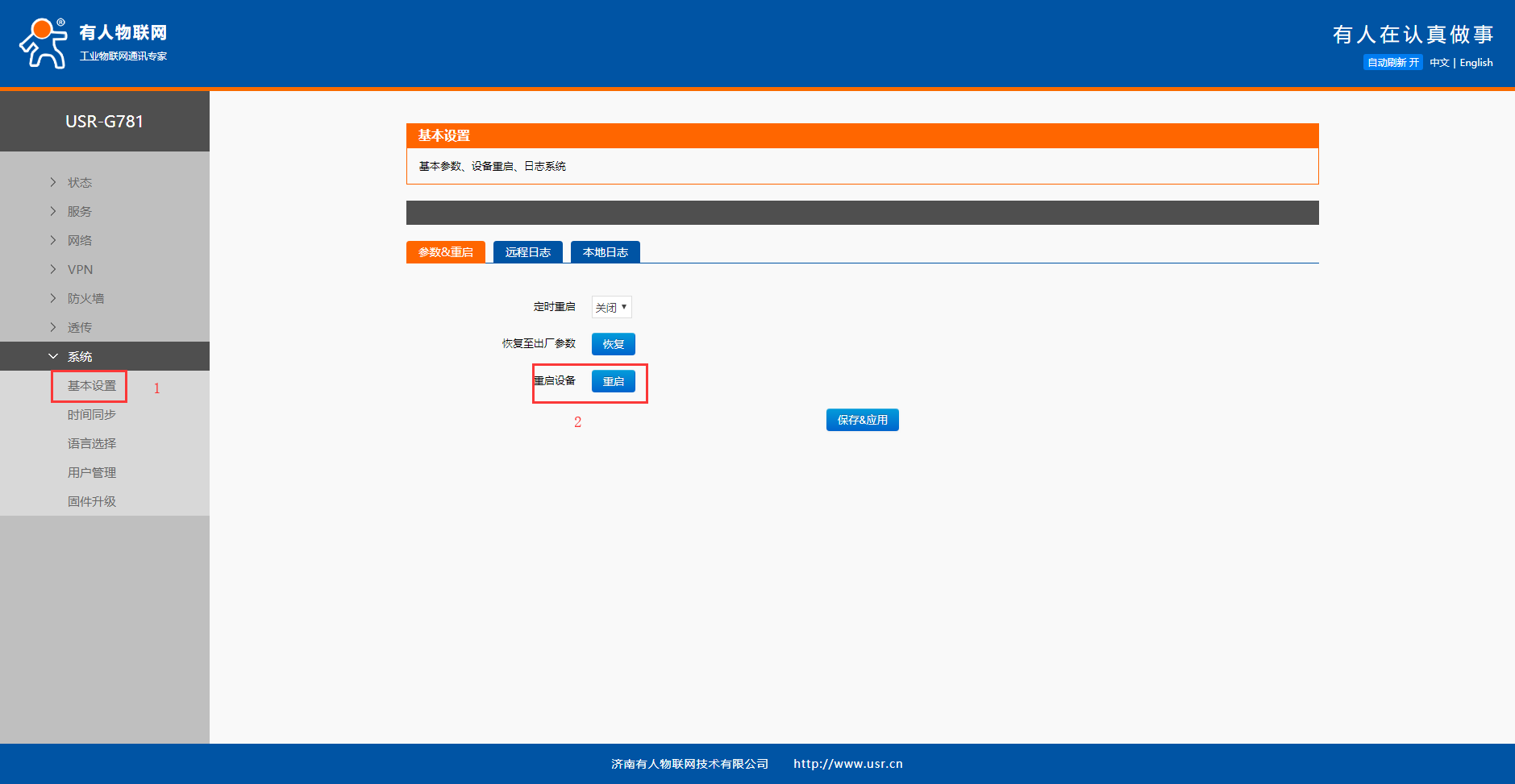 3、應用配置完成之后,點擊系統---基本設置---重啟,重啟設備