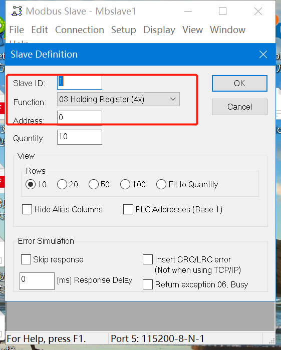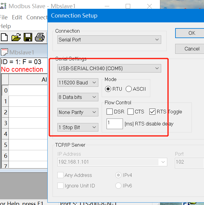 1、打開modbus slave軟件,選擇串口以及設置串口參數