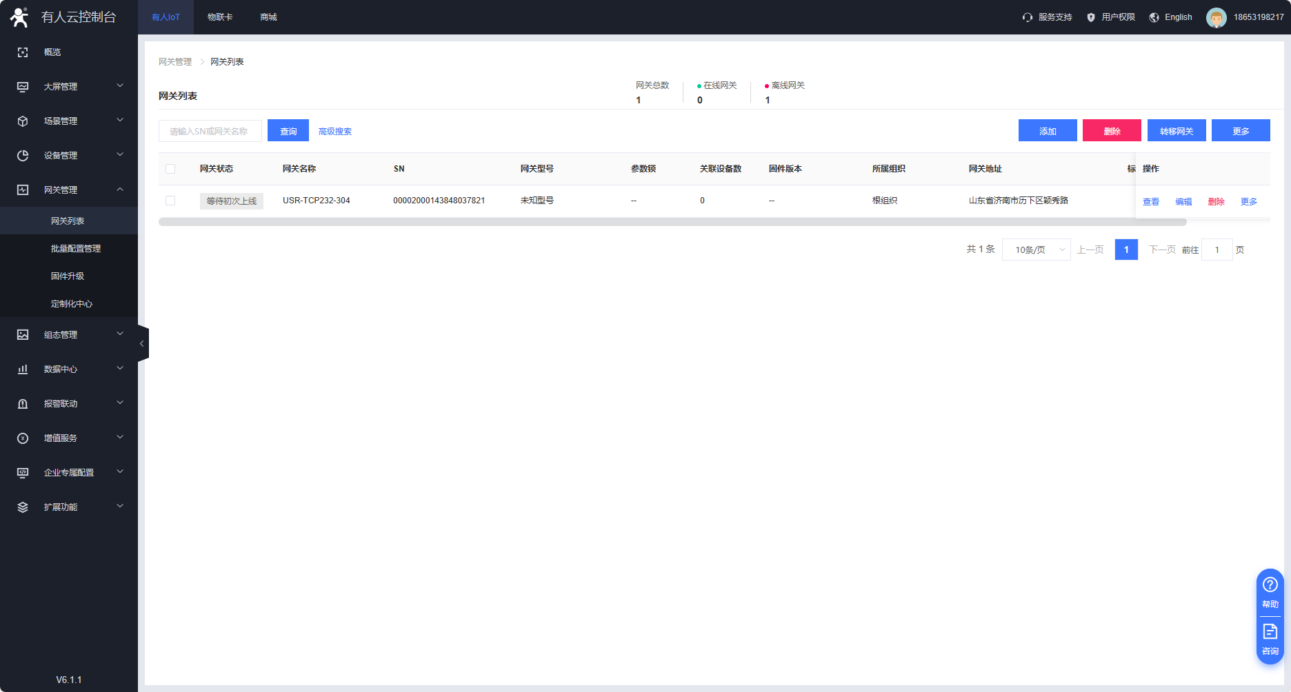云平臺添加設備,在網關管理---網關列表--添加網關,點擊SN不支持,系統自動生成,不需要自己設置,通訊密碼可以自定義8位密碼.(建議使用系統自動生成的通訊密碼)