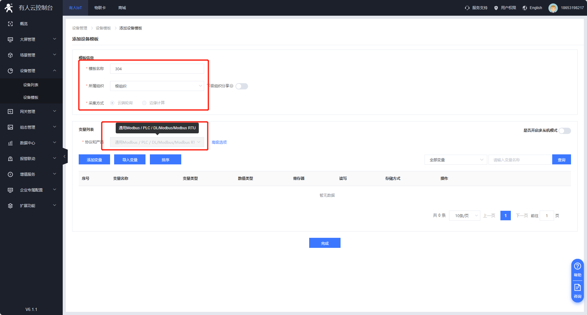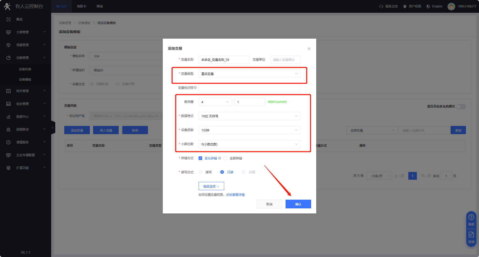 從機地址: 根據304連接的串口設備modbus從機地址實際填寫;串口序號: 默認;