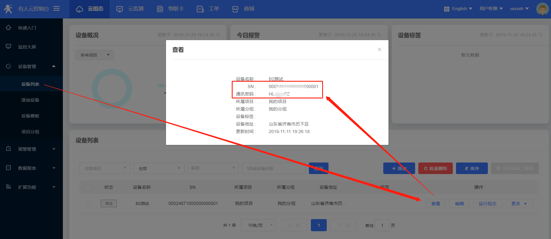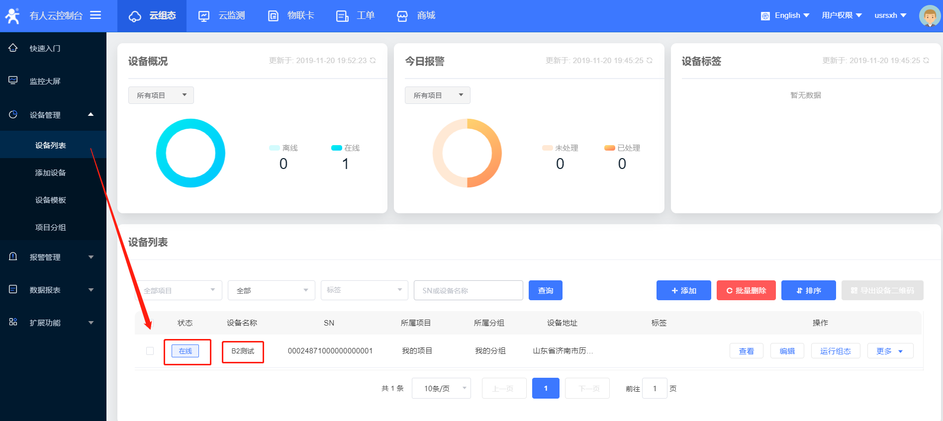 17、設置完所有的參數要重啟設備,稍等一會,在有人云界面,您會看到設備已經上線