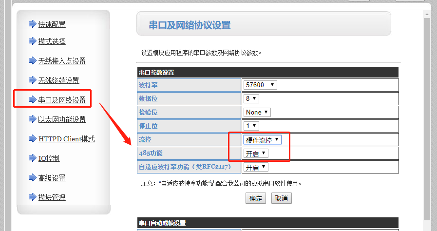 注:若是B2連接485串口線,使用485串口線時, 需要現將模塊的打開485功能,可在內置網頁或AT指令配置AT+FUDLX開啟485功能,該命令使能或禁止 485 控制功能,默認 RS485 是關閉的,485 控制引腳為 RTS。該命令設置后恢復出廠設 置生效。 AT+UART配置硬件流控,重啟生效,指令詳情可看產品軟件設計手冊AT指令詳情部分。