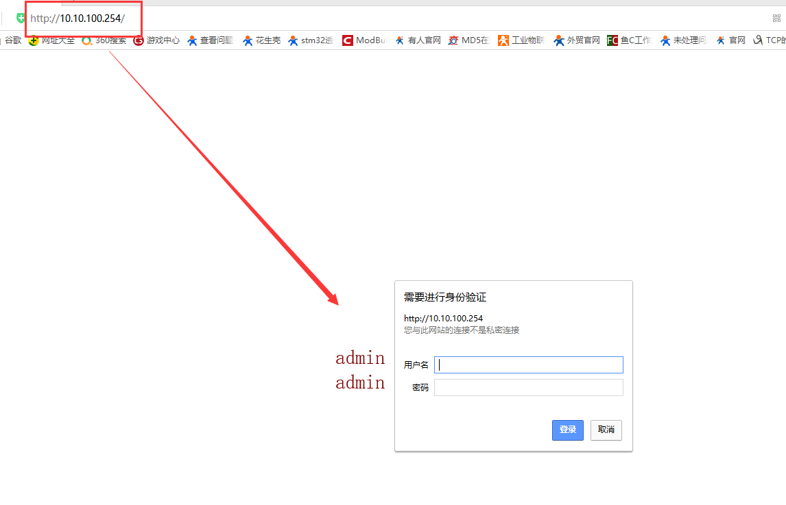 3. 用瀏覽器打開W610的IP地址(出廠默認10.10.100.254),用戶名和密碼均是admin;