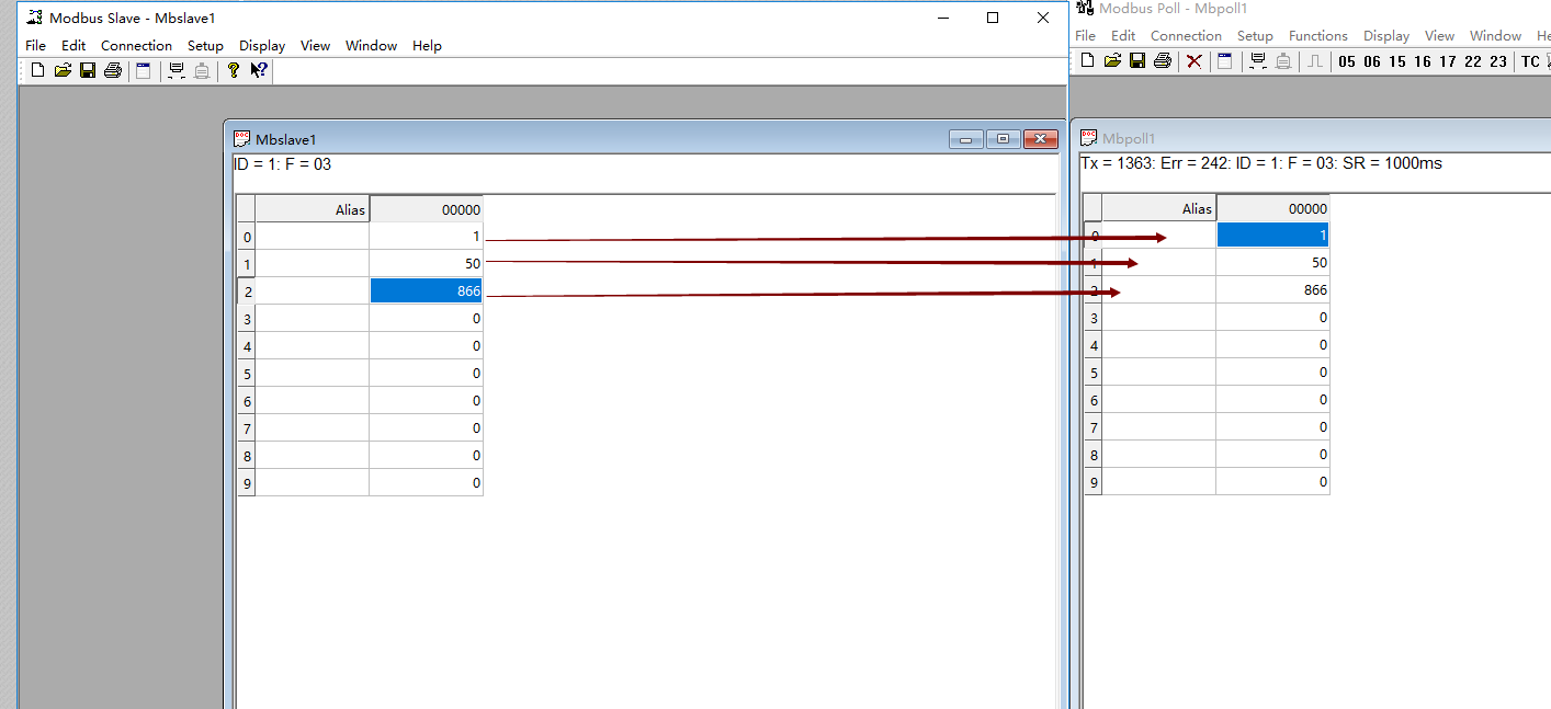 10、打開modbus poll和modbus slave軟件,分別設置參數,選擇modbus tcp/ip協議,然后連接W610的端口和ip;