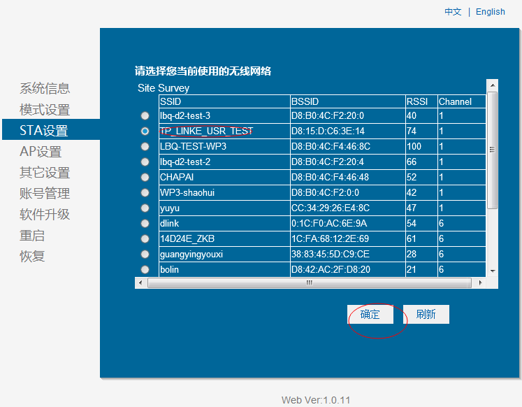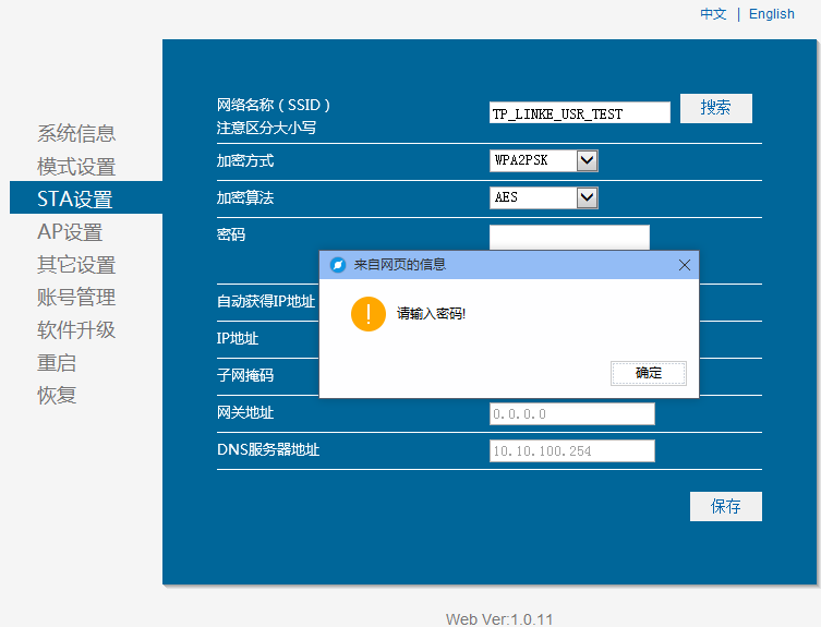 3:設置STA要連接的路由器。點擊搜索。搜索無線路由器。輸入路由器的連接密碼。